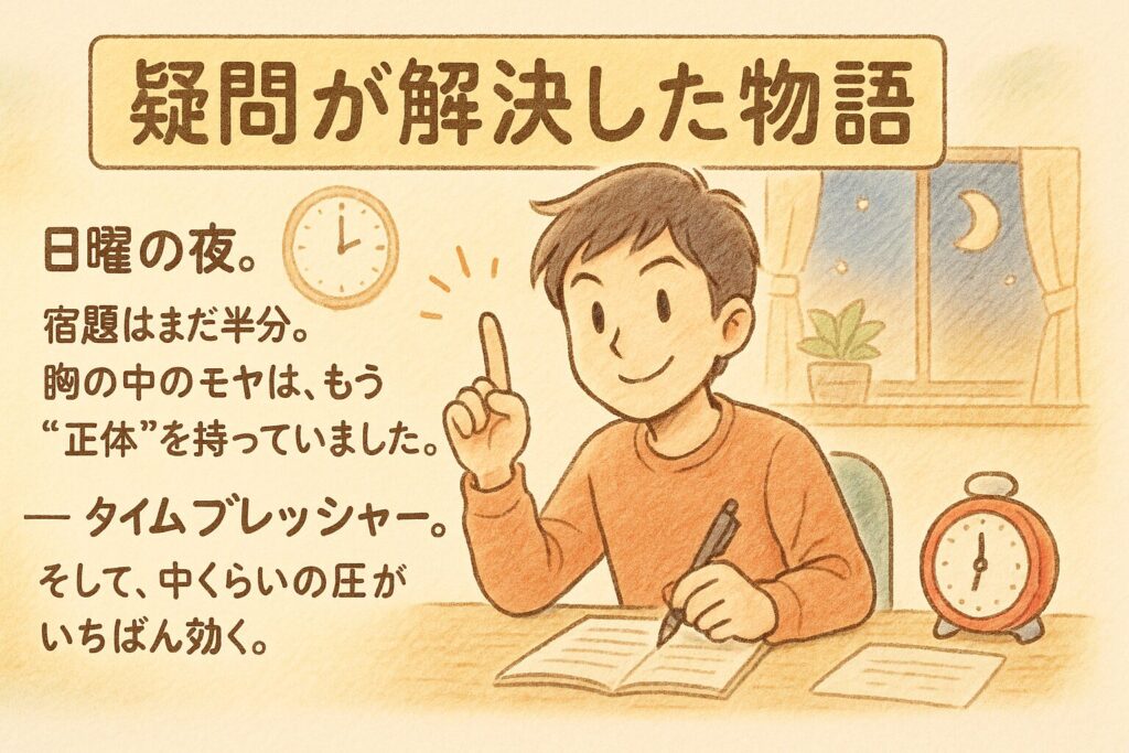 “時間の切れ目が力のスイッチになる”という視点で見てみると、タイムプレッシャーの意味がいっそうクリアになるはずです。