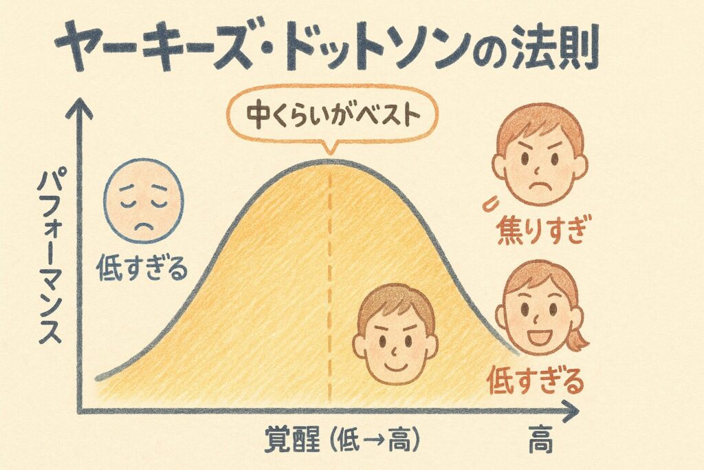 - 「ドキドキが力になるのはなぜ?」——Yerkes–Dodsonの法則とは?(中くらいの緊張が最も成果を出す)