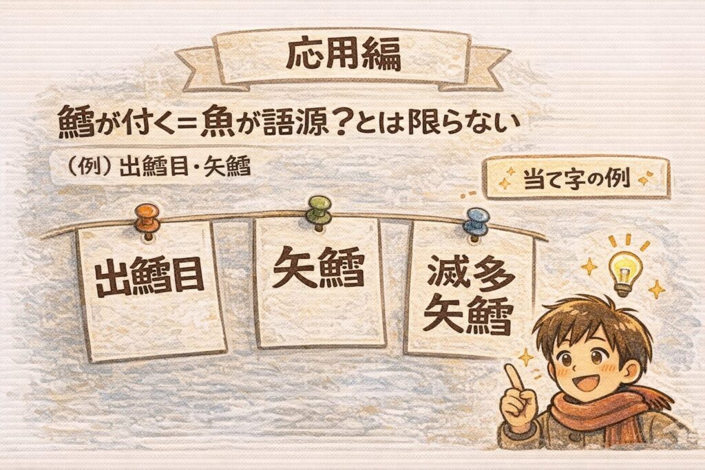 A. 直結しない可能性が高いです。辞書では「出鱈目」も当て字とされています。「鱈」が付く=魚が語源、と一直線に決めないのが安全です。