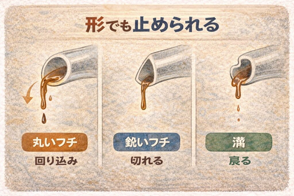 - 注ぎ口の形(フチの鋭さ)がなぜ効くのか