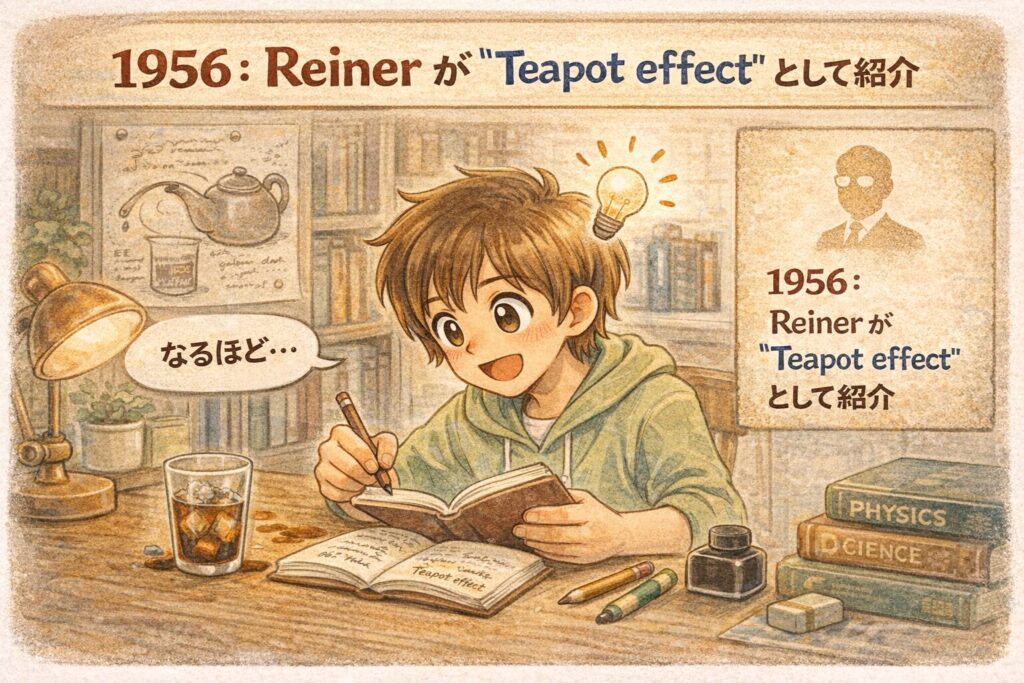 - 1956年、物理雑誌 Physics Today に、Markus Reiner(マルクス・ライナー) が「Teapot effect」を取り上げた記事が掲載されています。