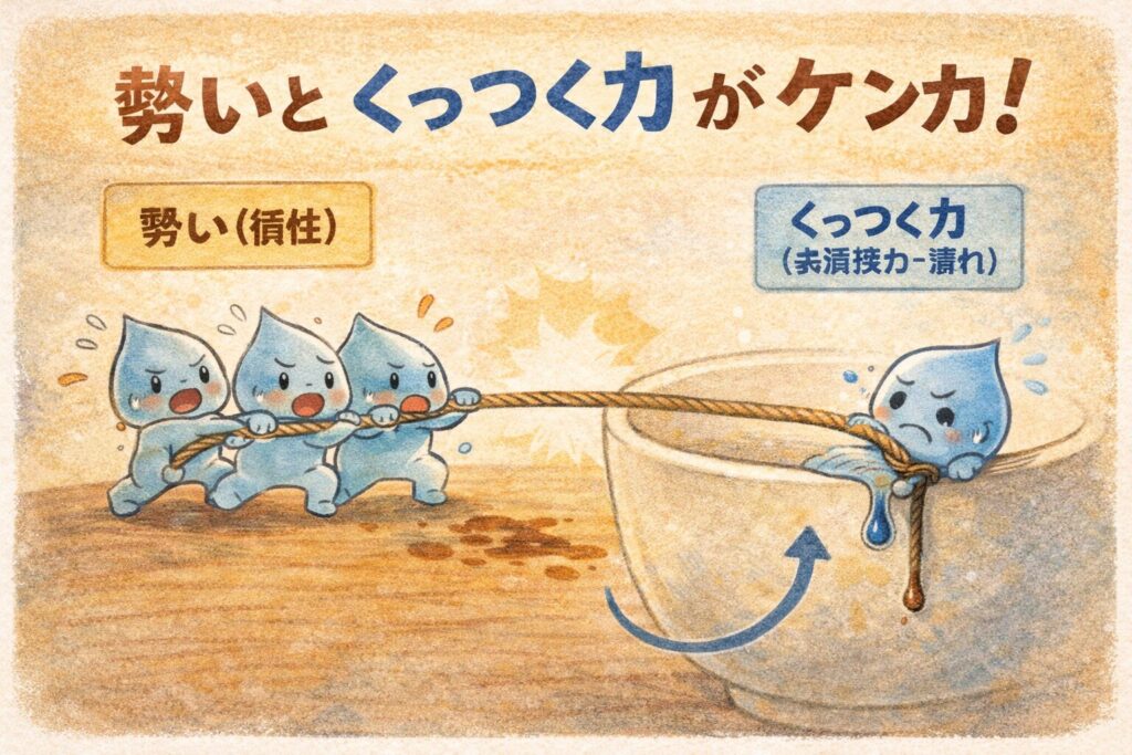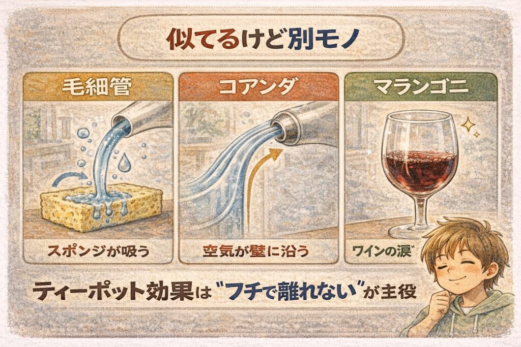 - ティーポット効果:**フチで“離れるはずが離れない”**が焦点