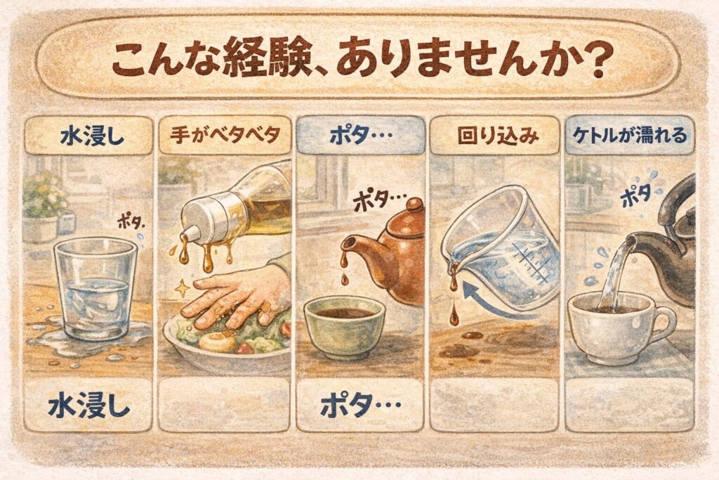 コップのフチで起きる「たった一滴の裏切り」が、偶然でも不器用さでもなく、ちゃんと理由のある出来事だと分かるからです。