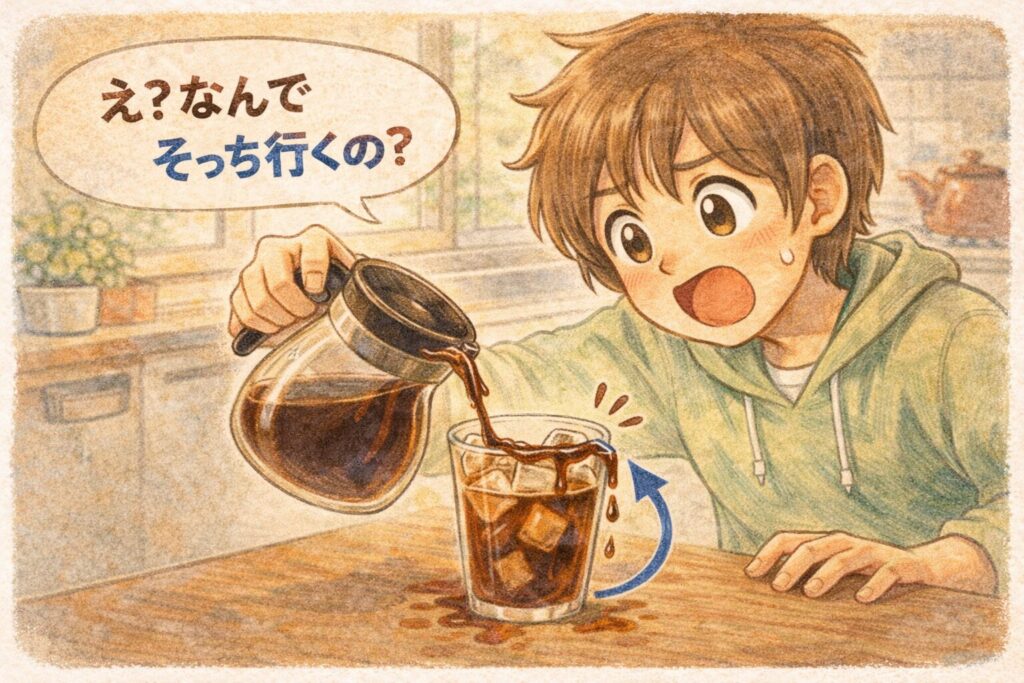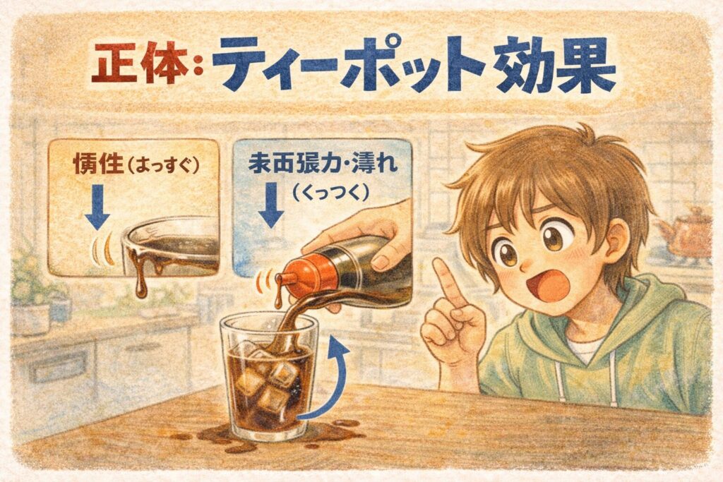 注ぐとコップの外側をつたってこぼれる…原因は?『ティーポット効果』を最速理解→深掘り解説
