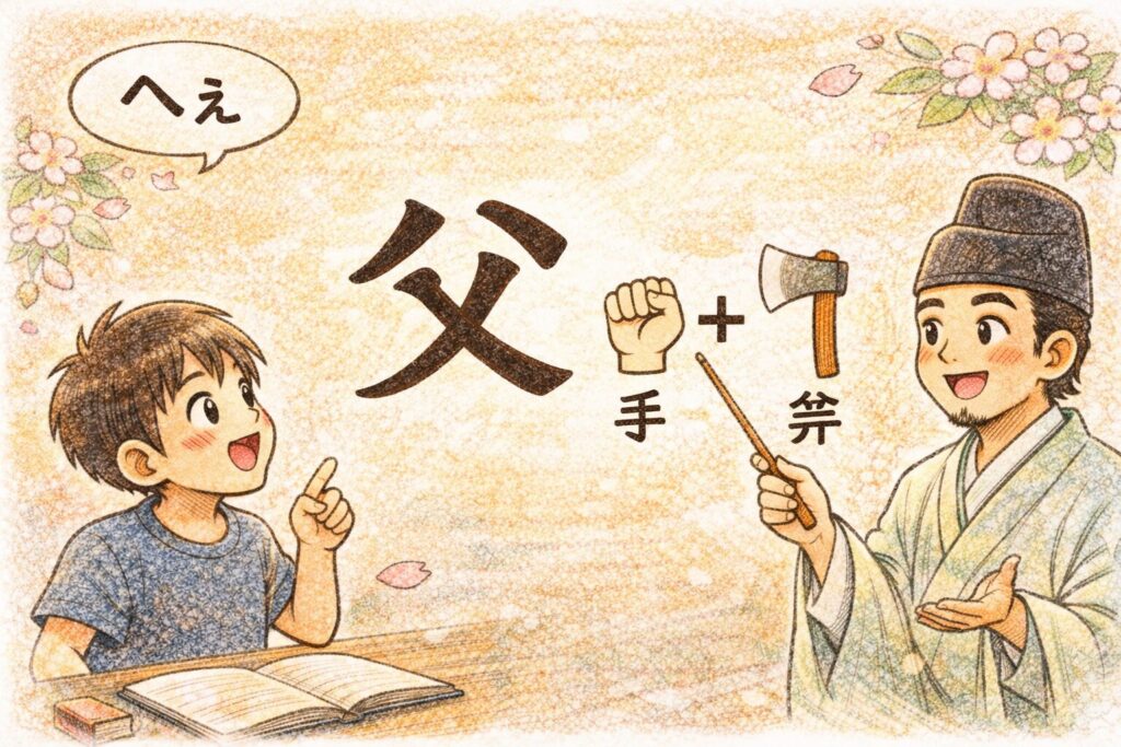 「父」は、斧を握る強さのイメージから生まれ、