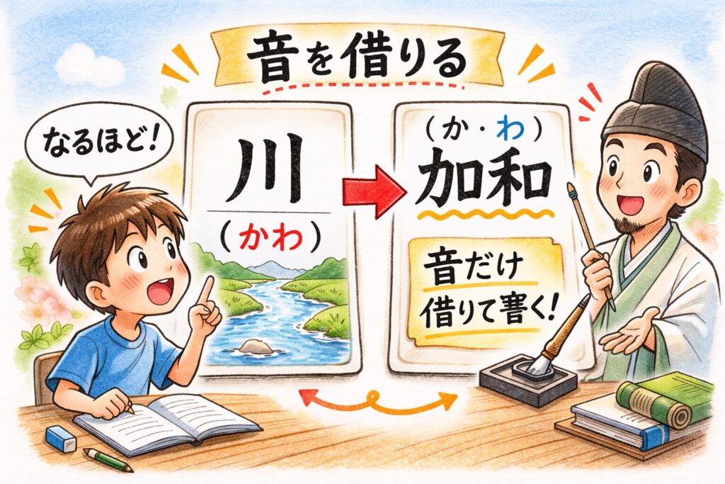 - 音だけ借りて「加和(か・わ)」みたいに書く