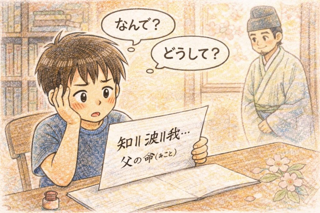 あのプリントの「知〻波〻我…」が、まだ目の前に居座っていました。