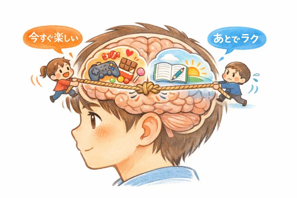 宿題を選べば、今すぐ遊ぶ楽しさは減ります。