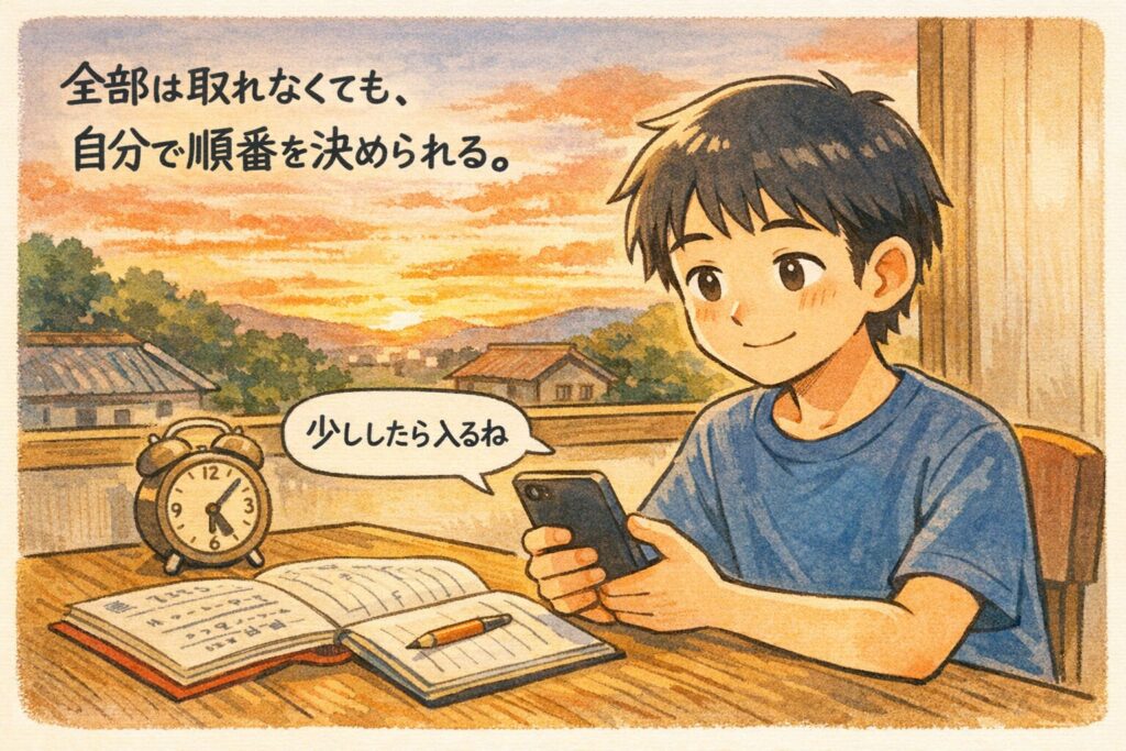 そして宿題を終えたあと、約束どおりゲームを始めたユウタは、前より少しだけ晴れやかな気持ちで遊べました。