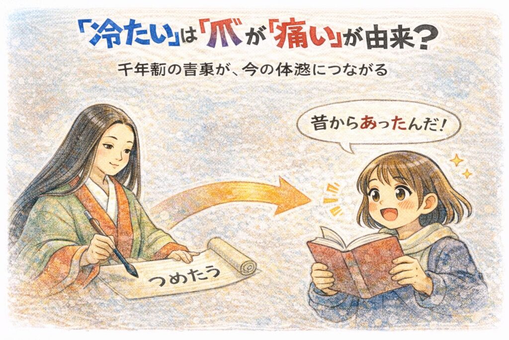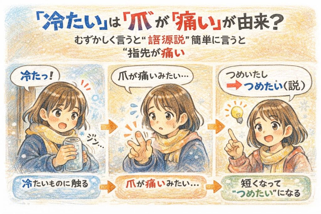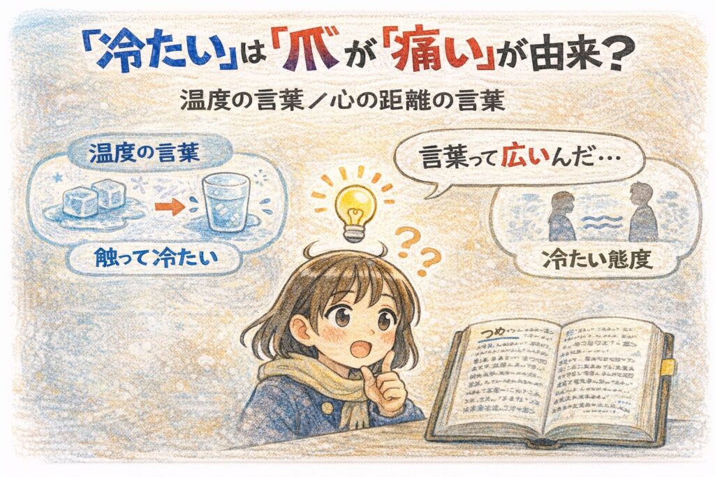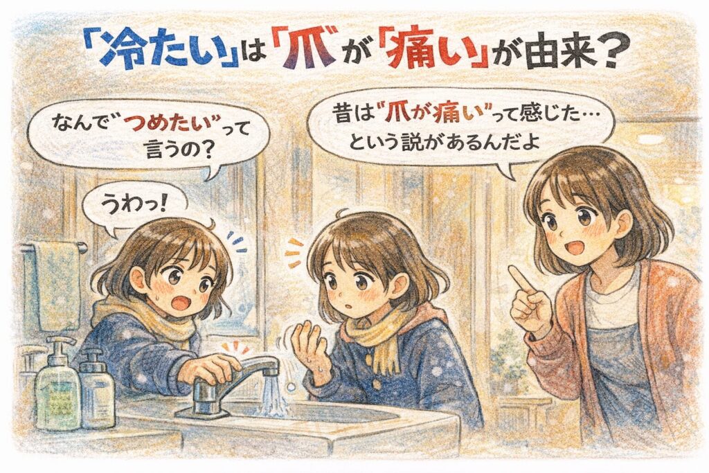 「冷たい」は“爪が痛いほど冷える”感覚(=『爪痛し(つめいたし)』)から来た、という説があります。