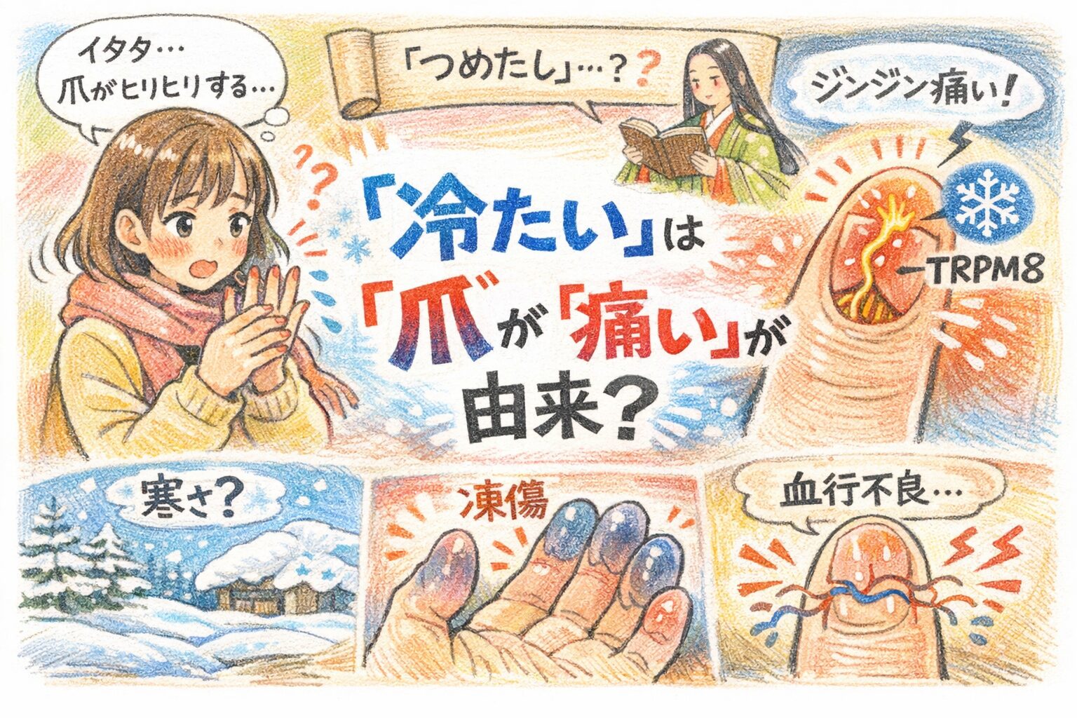 「“つめたい”って、爪そのものが痛いって意味じゃなくて、爪の下や周りの指先が冷えで痛く感じることがあるからなんだよね」