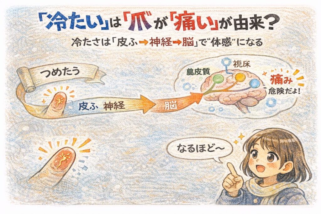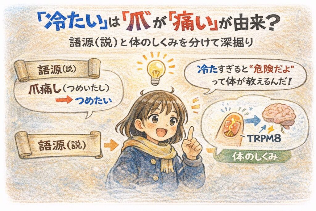 語源の“説”と古典の用例、そして科学で「冷たいのに痛い」をスッキリ整理します。