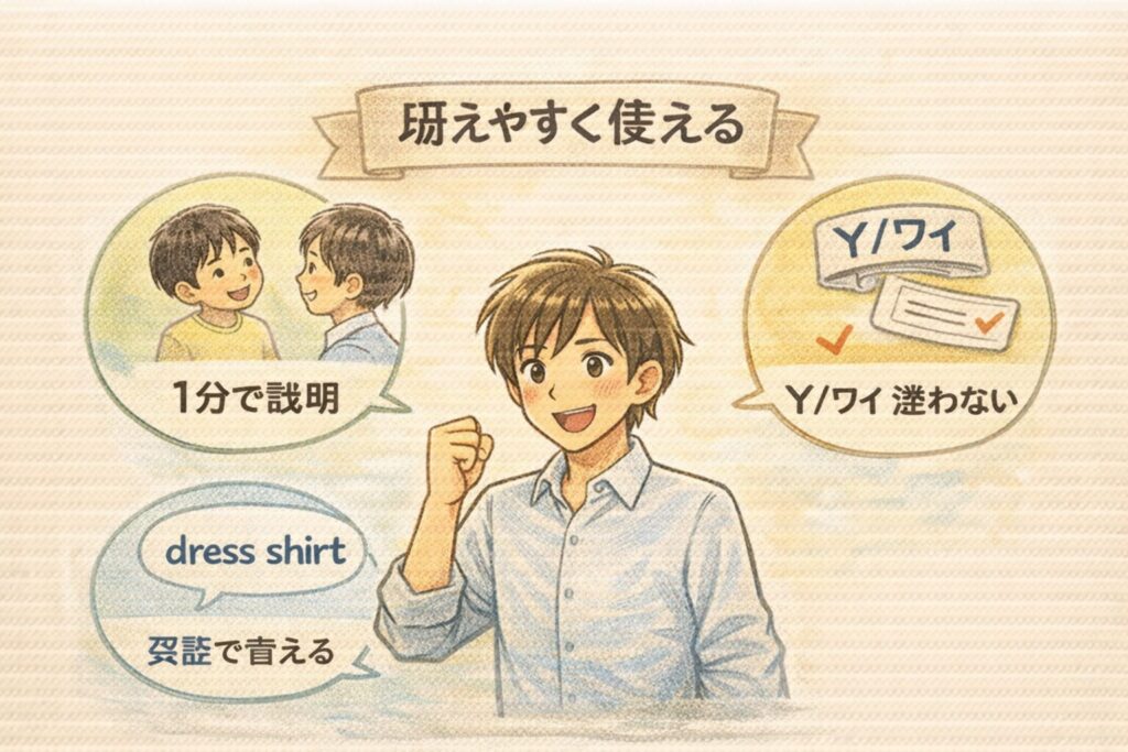 - 「Yシャツって英語で言ったら止まった…」みたいな体験がある人ほど刺さります。