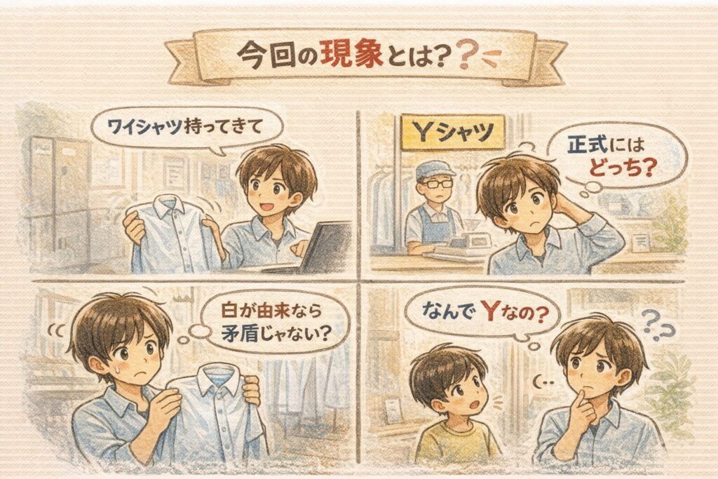 実は『ホワイトシャツ(white shirt)』が元だと聞いて混乱する現象」です。